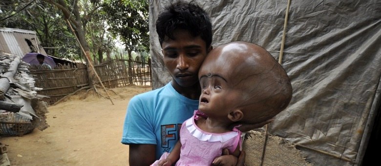 Médicos indianos reconstroem cabeça de menina hidrocefálica Segunda etapa da reconstrução do crânio de uma menina de um ano foi um sucesso