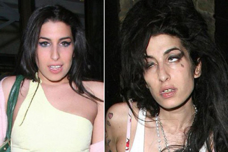 Amy Winehouse surgiu para o mundo como uma cantora bonita e com um corpo invejado por muitas mulheres. Mas se comparar uma foto de Amy na época do lançamento do primeiro disco, Frank (2003), com as imagens da turnê de divulgação de Back To Black (2006), é possível notar que a cantora não só abusou nas drogas, como provavelmente deixou de se alimentar. Além da diminuição de peso, Amy também perdeu dentes por conta do abuso de cocaína. E foi exatamente essa a causa da morte da estrela, aos 27 anos, em 2011Foto: Divulgação